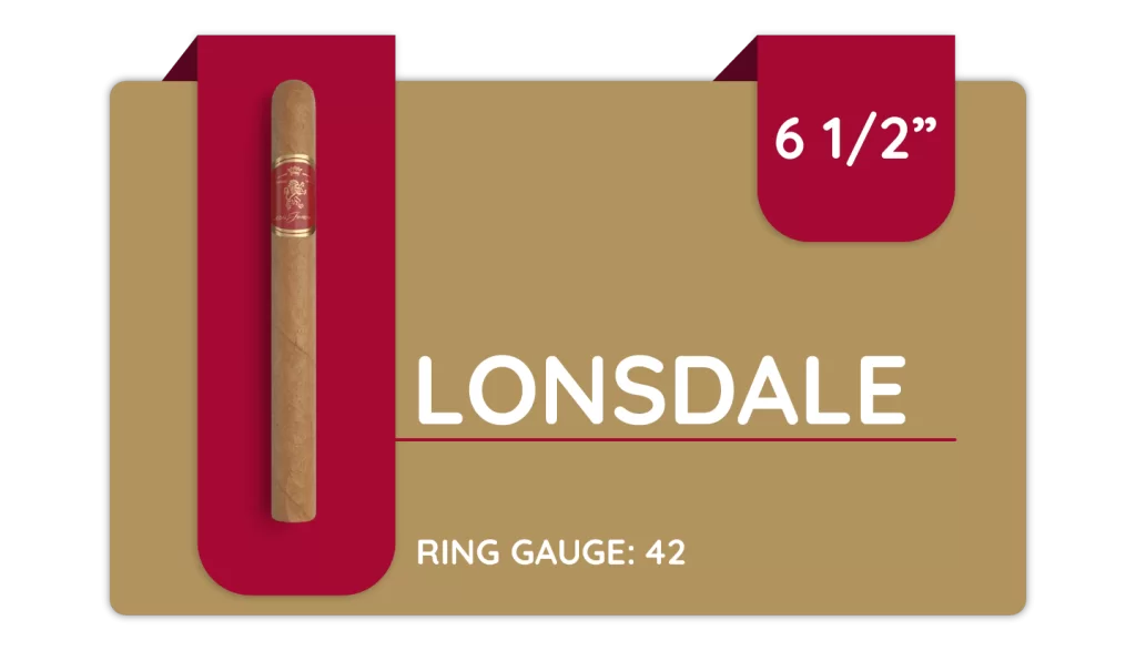 is a cigar with a length of about 6 to 6 1/2 in. and a thickness of about 42 to 44 mm. Lonsdales are known for providing a smoother and more delicate smoking experience compared to other cigars of similar thickness.
