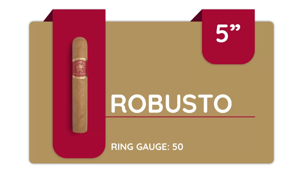 With a length of around 5 in. and a thickness of about 50 to 54 mm, robustos offer a longer smoking time and a deep, robust flavor experience. Among experienced smokers, this type of cigar is highly appreciated for its strong and deep flavor, as well as its intensity.